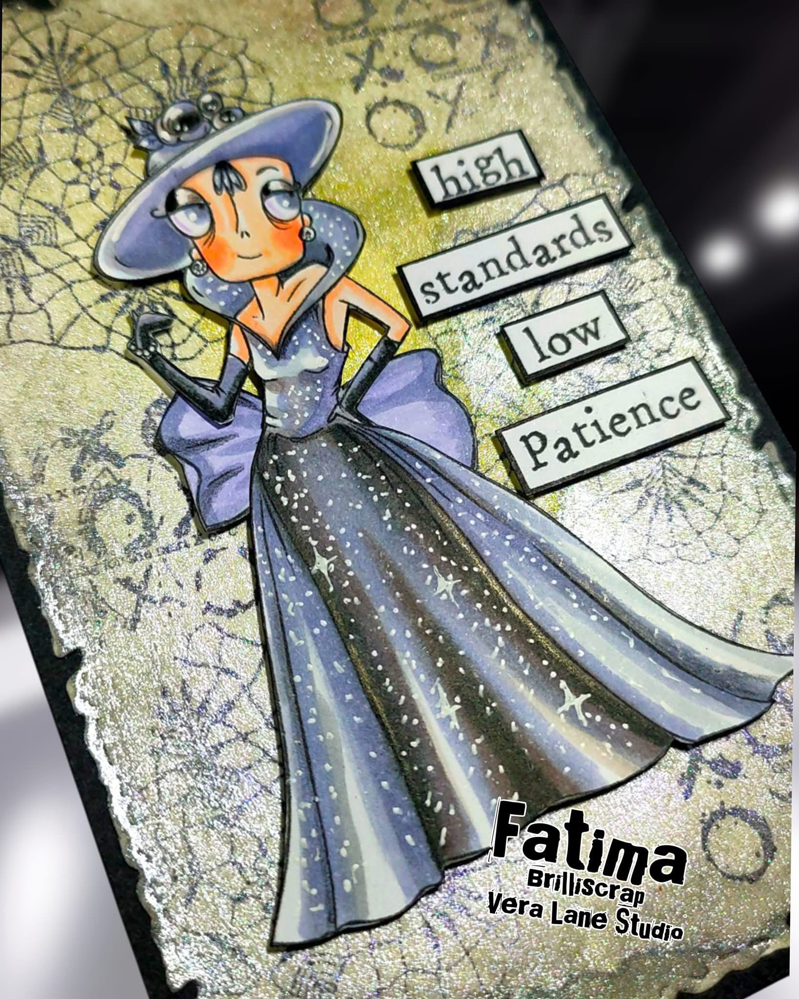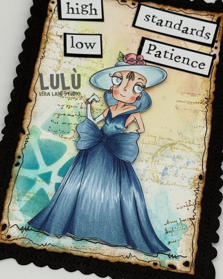 This digi set includes 6 uncolored images (JPG & PNG), featuring Dee in her couture gown, matching accessories, and snarky sentiments to elevate your cards, journals, and mixed media projects.