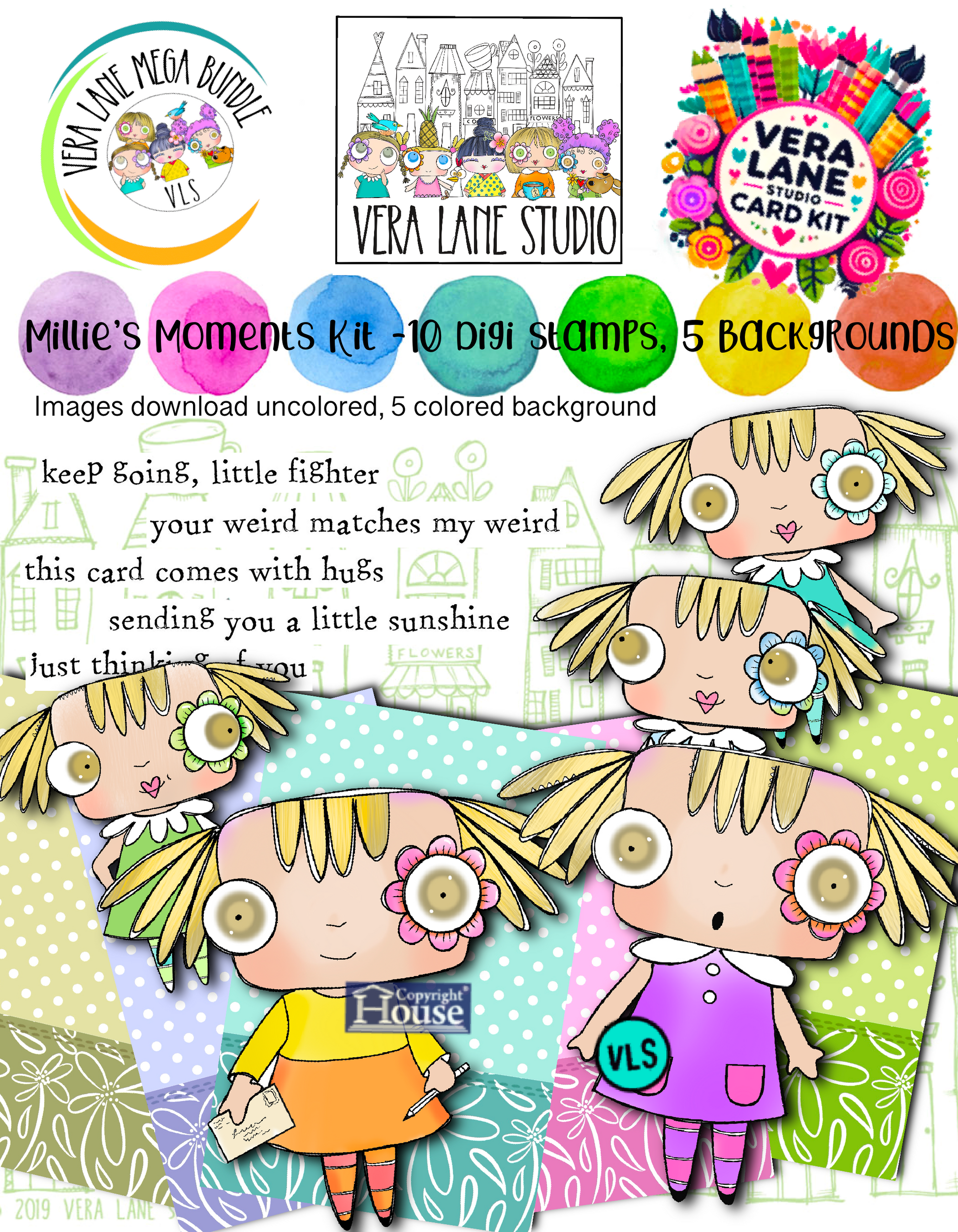 Perfect for batch card making, this kit is your go-to solution for those “I need a card right now” moments. Mix and match Millie’s sweet expressions and backgrounds to create quick, thoughtful cards for any occasion. Ideal for card makers, art journal's, and digital crafters who love having creative options at their fingertips.